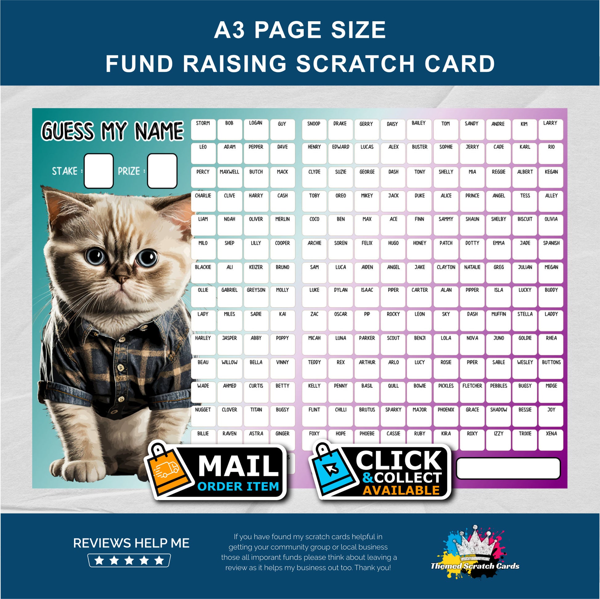 A3 Cat Name Fundraising Scratch Card - Local & Community Fund Raising A3 Flat