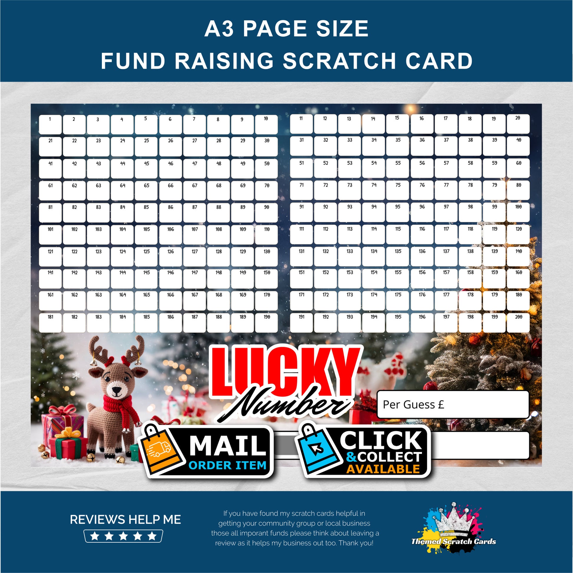 Christmas Lucky 200 Number Fundraising Scratch Card - Local & Community Fund Raising A3 Folded